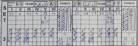 What ever Mirja – the Strood coach – said during the time out worked a treat. Strood had pulled back 5 points , again with the attacking serve from Strood number 73, with Quartz managing to side out at 23-20 in their favour.